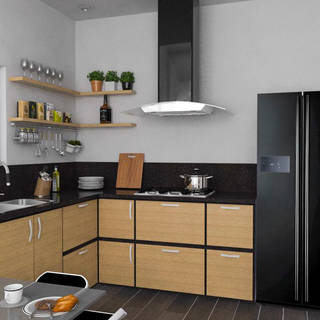 Cocina en forma de L: Como el nombre lo indica, son aquellas que disponen los módulos de los gabinetes en forma de L (dos paredes). Este diseño es una de los más famosos pero sólo es factible si el espacio lo permite.