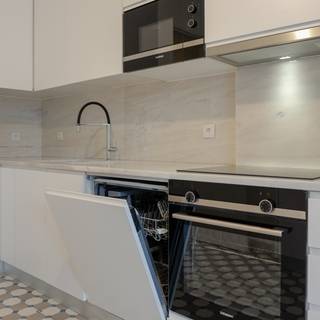 Cocina con barra: Son aquellas que incluyen una barra de desayuno y son populares por su practicidad. Estas barras son populares en apartamentos donde cada metro cuadrado es importante, además conecta el espacio de la cocina con áreas más sociales como el comedor o la sala.